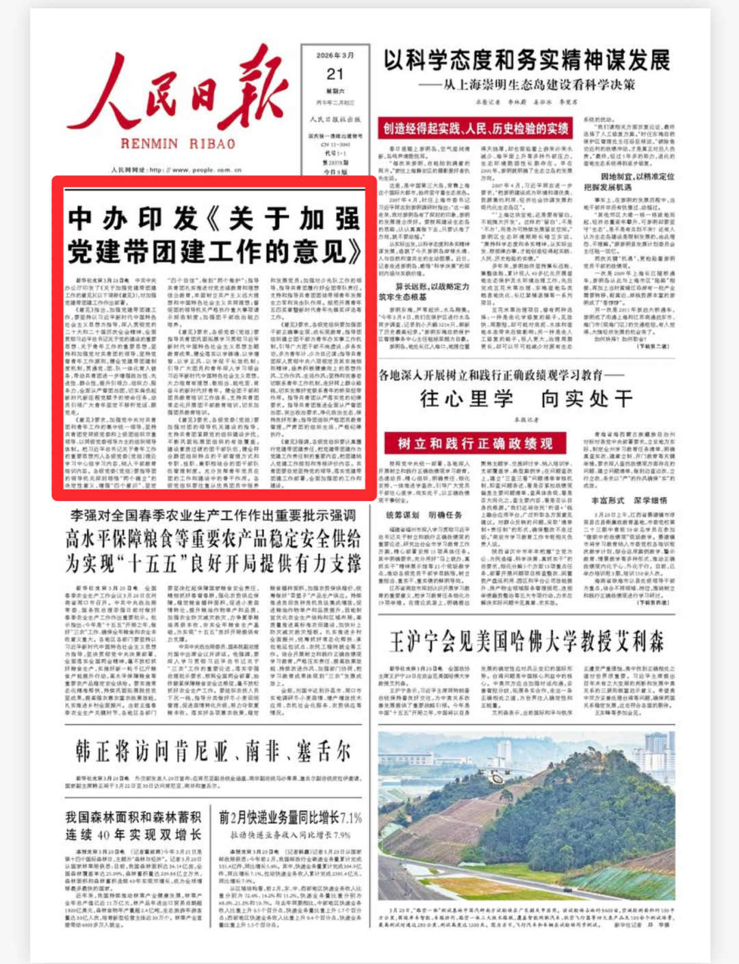 中共中央办公厅印发了《关于加强党建带团建工作的意见》(以下简称《意见》),对加强党建带团建工作作出部署。《意见》指出,加强党建带团建工作,要坚持以习近平新时代中国特色社会主义思想为指导,深入贯彻党的二