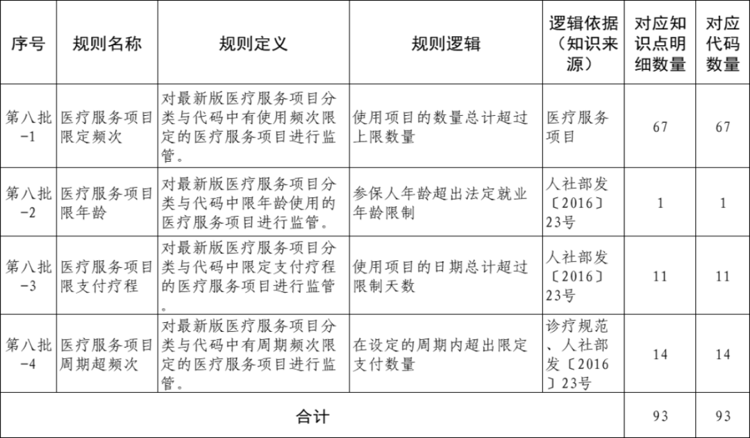 近日,我们完成了“医疗服务项目限定频次”“医疗服务项目限年龄”“医疗服务项目限支付疗程”“医疗服务项目周期超频次”4项规则对应知识点明细(共计93条)的意见征求和修订完善工作,现面向社会公开。