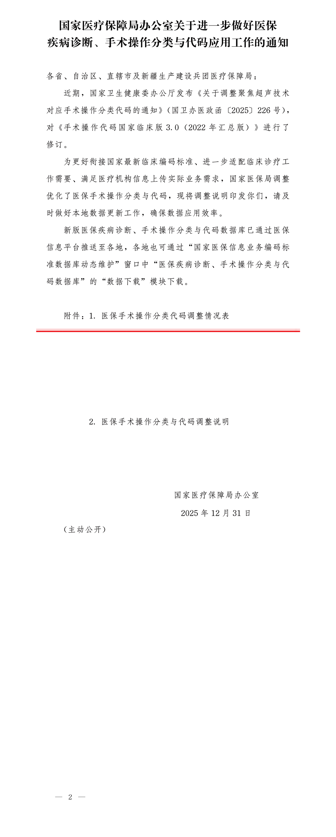 国家医疗保障局办公室关于进一步做好医保疾病诊断、手术操作分类与代码应用工作的通知